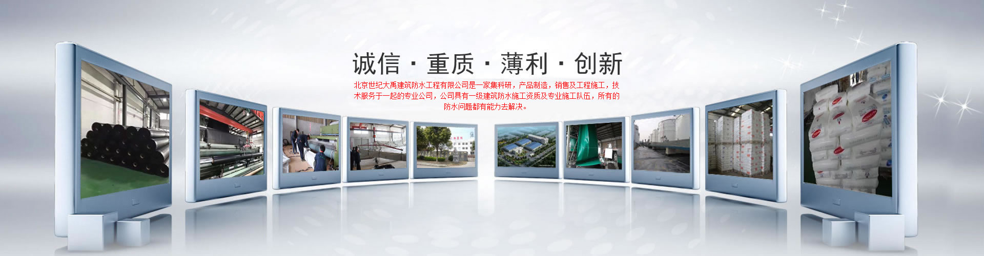 北京世紀大禹建筑防水工程有限公司是一家集科研,產(chǎn)品制造,銷售及工程施工,技術(shù)服務(wù)于一起的專業(yè)公司,產(chǎn)品主要包括道路橋梁專用材料、建筑堵漏材料、建筑防水卷材、建筑防水涂料等。產(chǎn)品行銷全國,形成了覆蓋全國的營銷服務(wù)網(wǎng)絡(luò)。產(chǎn)品廣泛應(yīng)用于建筑物屋面、地下、地鐵、隧道、橋梁、泳池、糧庫、種植屋面等防水、防潮、防腐、防滲等工程。公司具有一級建筑防水施工資質(zhì)及專業(yè)施工隊伍,所有的防水問題都有能力去解決,作為系統(tǒng)防水解決方案的提供者,我們已經(jīng)將各項防水系統(tǒng)成功應(yīng)用于國家大型基礎(chǔ)設(shè)施建設(shè)項目中,防水系統(tǒng)優(yōu)良的應(yīng)用效果也獲得了用戶及社會各界的高度評價。 用戶滿意是企業(yè)永恒的追求,在充滿機遇挑戰(zhàn)的時期,將以市場為導(dǎo)向,以人才為根本,以技術(shù)為支撐,以資本為紐帶,打造一個實力雄厚、核心競爭力強大的國際化企業(yè)。我們將用信念、追求和執(zhí)著開啟新的航程,乘風破浪,勇往直前,駛向我們的理想和目標,為人類及社會創(chuàng)造持久安全的環(huán)境及構(gòu)筑和諧的人居環(huán)境貢獻我們的力量! |